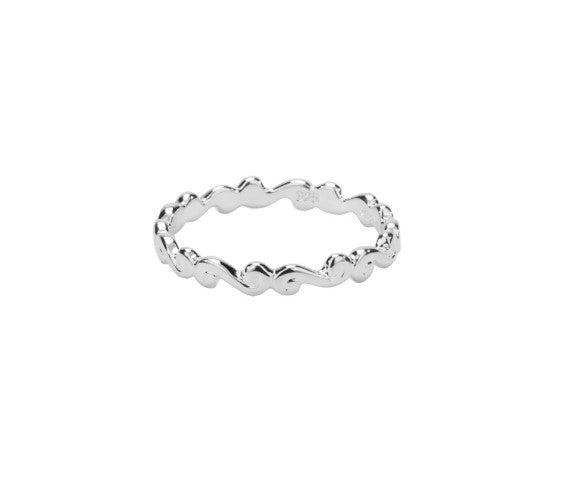 Spirals encircle this ring like silver waves. Encircled with love and tradition this slim band is the perfect addition to your ring stack.